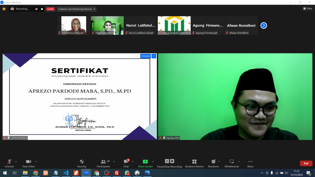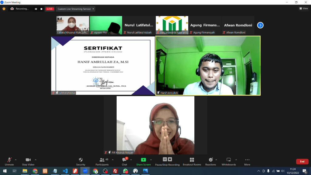 Tanggal 13 Desember 2022 telah di laksanakan kegiatan workshop pendampingan indeksasi scopus yang merupakan salah satu rangkain kegiatan dalam menyongsong jurnal unusa go scopus.