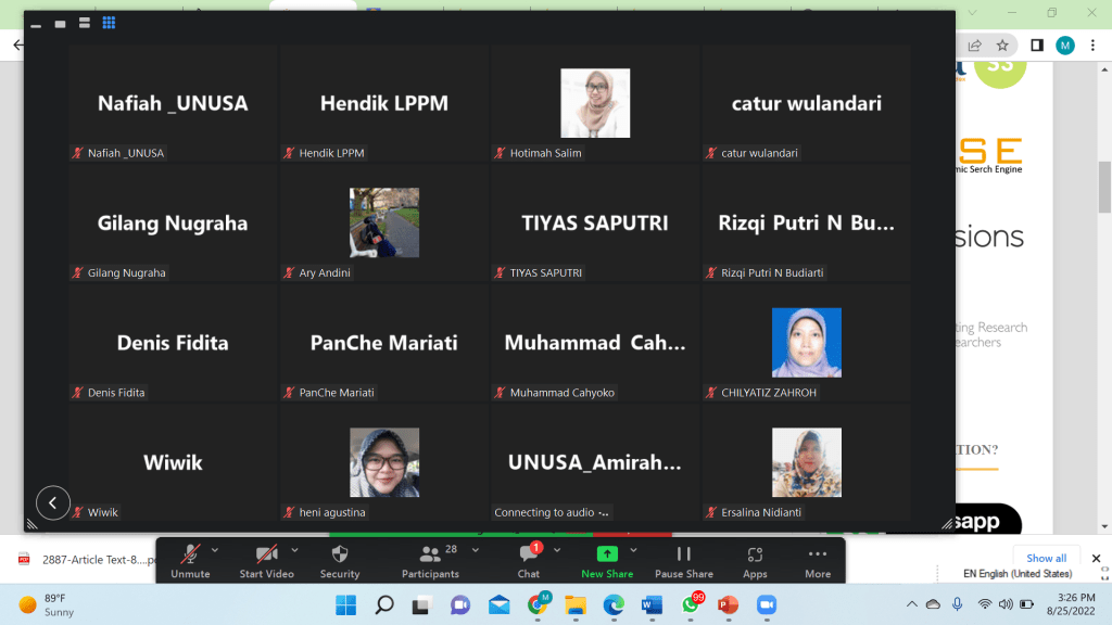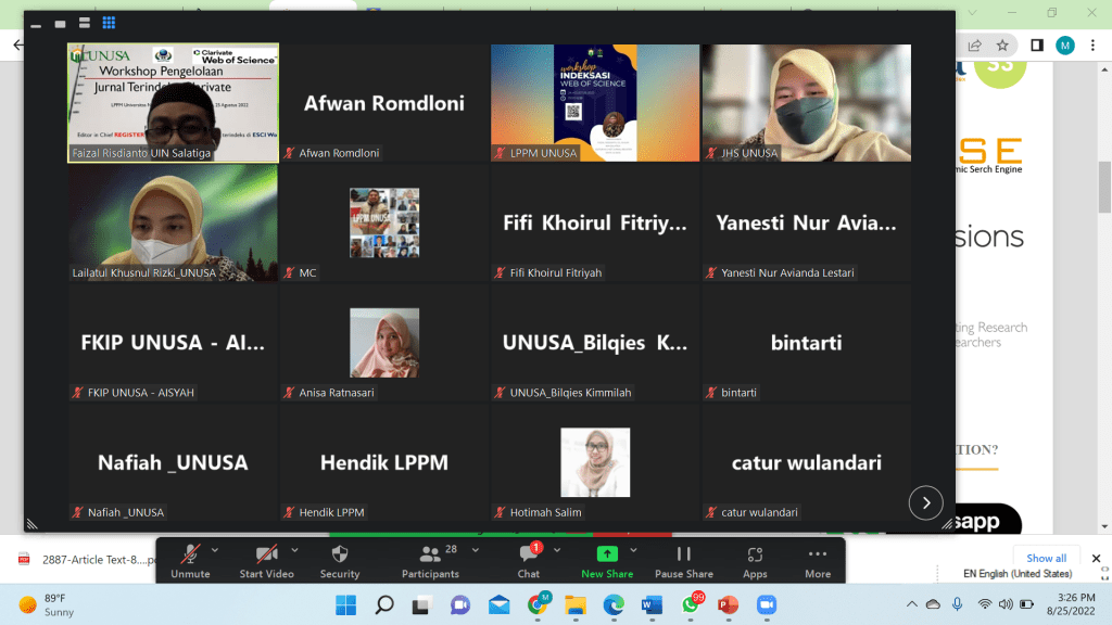 Sebagai upaya peningkatan kualitas dan reputasi jurnal di lingkungan UNUSA, Bidang 4 LPPM UNUSAakan mengadakan kegiatan “Workshop Pengelolaan Jurnal Terindeks Clarivate”Berikut untuk data datanya1. Materi2. Youtube